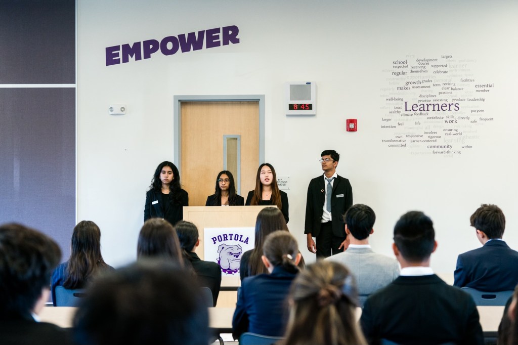 Portola MUN strives to create a welcoming environment in which delegates can exercise their critical thinking, speaking, and problem-solving skills. This diplomatic role-playing experience allows for personal growth, global awareness, and builds a network of like-minded individuals who are passionate about making a positive impact on the world. We emulate Portola High’s PRIDE values—Perseverance, Respect, Integrity, Drive, and Empathy—to create a memorable experience for our conference attendees. Welcome to Portola MUN!